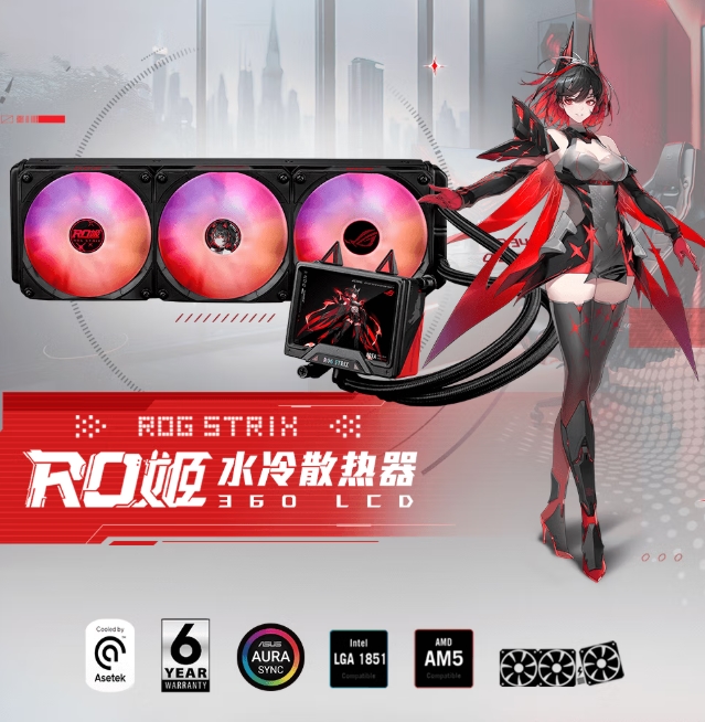 | 随着双十一购物热潮的持续升温,众多游戏玩家与DIY发烧友都计划借此优惠契机,组装一套高性能电竞主机。在众多硬件配置中,散热系统的选择尤为关键,而水冷散热器凭借高效散热能力成为不少玩家的首选。为此,小编精心挑选了多款ROG水冷散热器——它们不仅外观设计出众,更具备卓越的散热性能,十分值得入手。 ROG STRIX RO姬360 ARGB LCD水冷散热器 为了满足玩家的高散热需求,小编为大家带来了ROG STRIX RO姬360 ARGB LCD水冷散热器。其采用Asetek全新水泵方案,转速高达3200RPM,不仅具备更高的热循环速率,还兼顾更低的噪音表现,体验感非常舒适。同时,还搭载了3只高性能菊花链风扇,并预涂了高性能硅脂,提供更大热交换面积、更低的水阻和更大的流量,全面提升散热实力,轻松压制主机温度的躁动。在双十一期间,该水冷散热器仅需1399元,为游戏玩家提供更多选择。